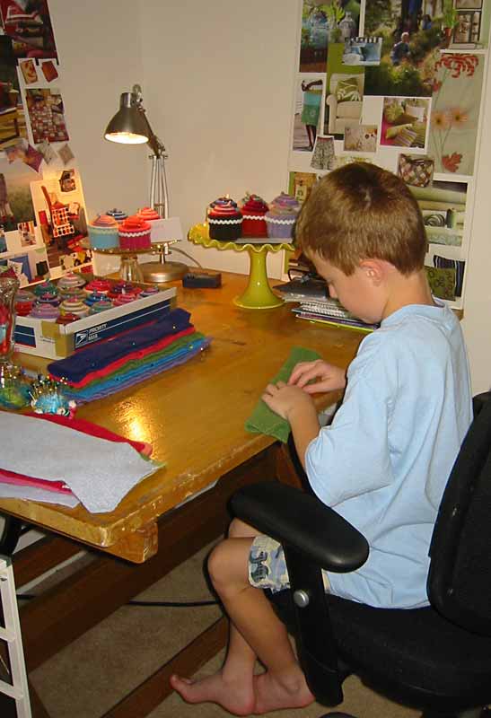 What a cute helper! I love a crafty boy. It is a cool 90 degrees in Madison for the first day of school. Hope it is cooler in Maryland. Take care. Love the pillows, too.