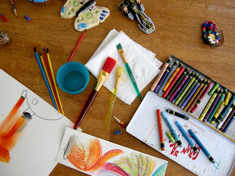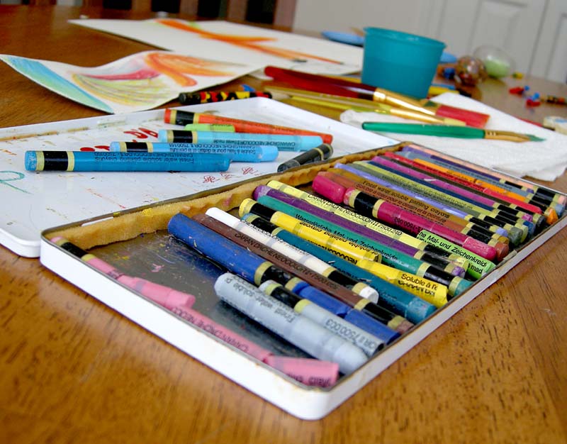 These are my old caran d’ache crayons from design school. Oh how I love these! They are smooth, come in brilliant colors and blend beautifully with water. (They are not inexpensive but if your kids learn to use them respectfully, they will benefit from using high quality materials! Amanda speaks to this topic in her book)