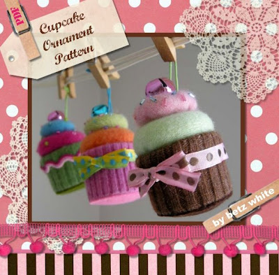 I’m also excited to be able to offer a NEW pattern (PDF) today: my Cupcake Ornament that I originally designed for Better Homes & Gardens Holiday Craft. The magazine is off newsstands now and many of you had trouble finding it in the first place. These are really easy to make and would look so cute attached to the top of a gift or hanging on nearly anything, not just a Christmas tree.