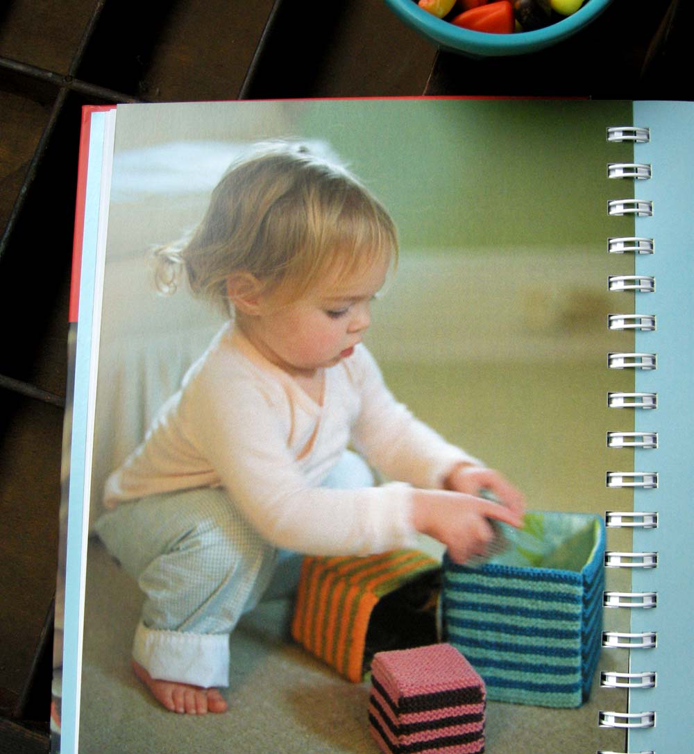 All of the Itty Bitty books have a hard cover with a spiral binding so they open up flat. The babies are adorable and photography is top notch. These knit nesting boxes look like a great project for beginning knitters.