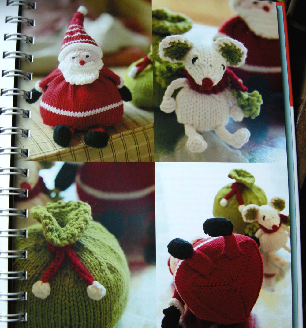 Ok, on to the book…I fell in love when I opened it to this page. Susan is that master of kid knitting, I tell ya. Look at these Christmas characters. Oh, I am having a cute-fest over here. Roly poly Santa!