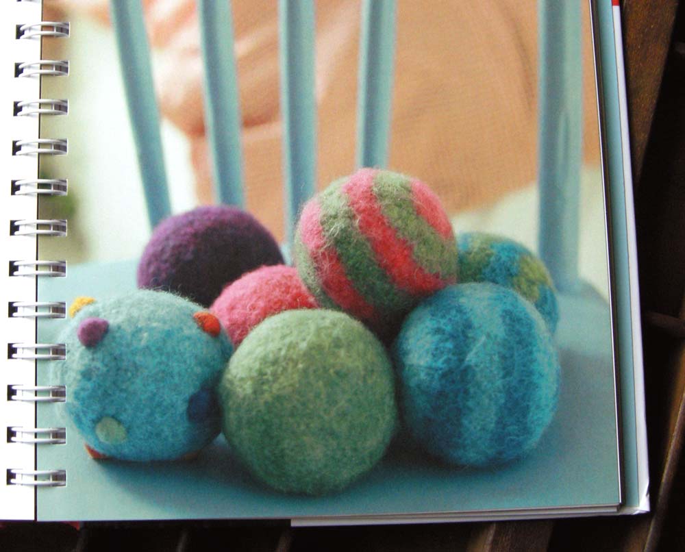 Who wouldn’t love a bowl full of felty bouncy balls? I can’t wait to make some of these. They’ll have to sit in my knitting queue for just a bit, though. I’m about a third of the way finished with my new Shalom Cardi. If I could just sit still long enough to knit! 🙂