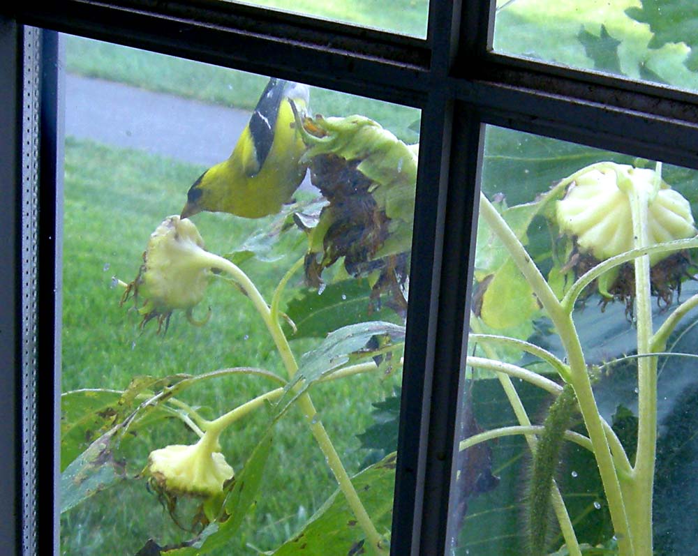 The sunflowers my husband planted outside our breakfast nook window have faded and gone to seed. I will miss their sunny faces bobbing in the breeze.