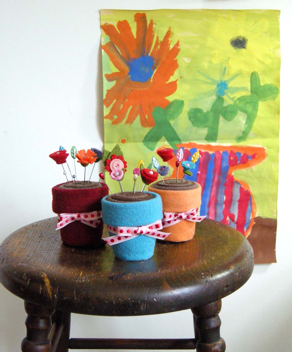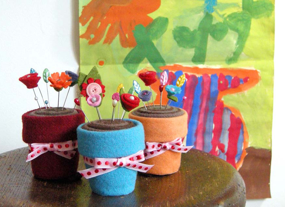 - Flowerpot pincushion with flower pins
