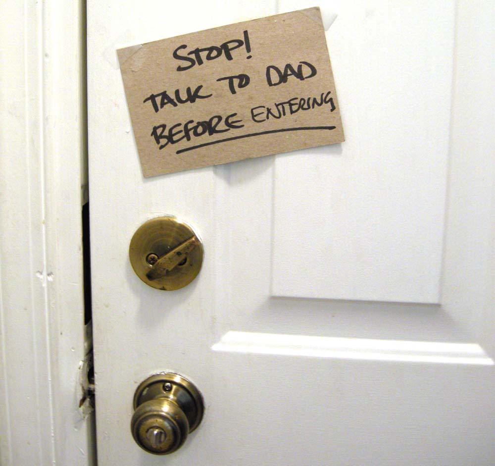 I found this note on the hallway door to the garage last week! Navigating bikes out of the garage takes a certain finesse and he wanted to be sure to protect his hard work (and boys!) from any mishaps.